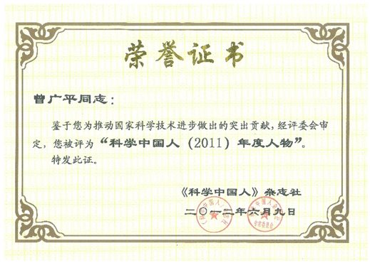 鉴于曾广平教授长期致力于“软件人”方面的研究,提出了基于“软件人”的分布/迁移/协同模型,给出了相关的迁移与协同算法,在狭义范畴上实现了协同仿真;提出了将操作系统人性化的研究方法和实现思路,在“软件人”与Linux的融合方面取得了阶段性成果;提出了“软件人”研究方向,构造了“软件人”体系结构,实现了“软件人”系统原型系统,并用之于构造新的智能系统,2012年被评为科学中国人(2011)年度人物。