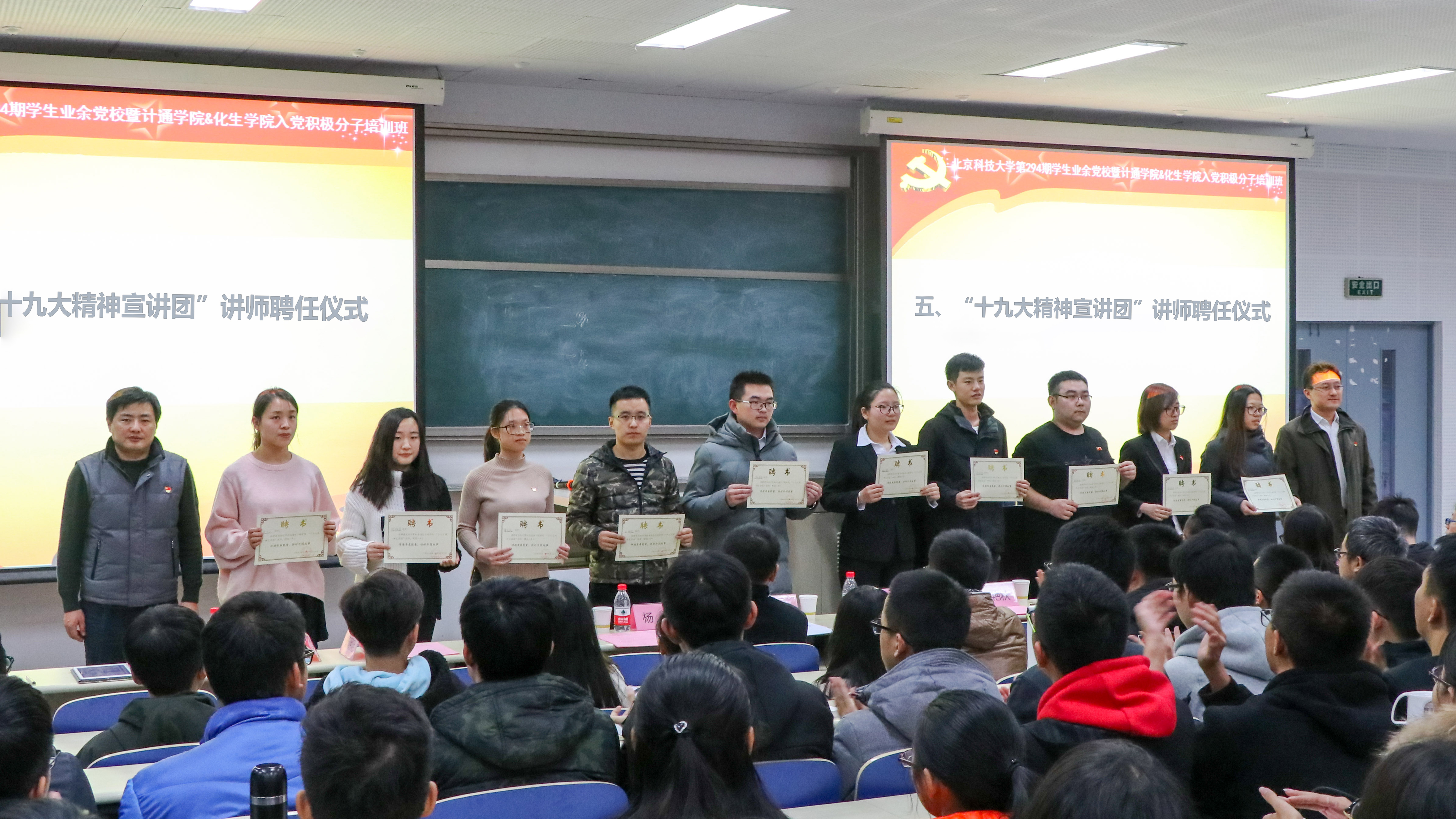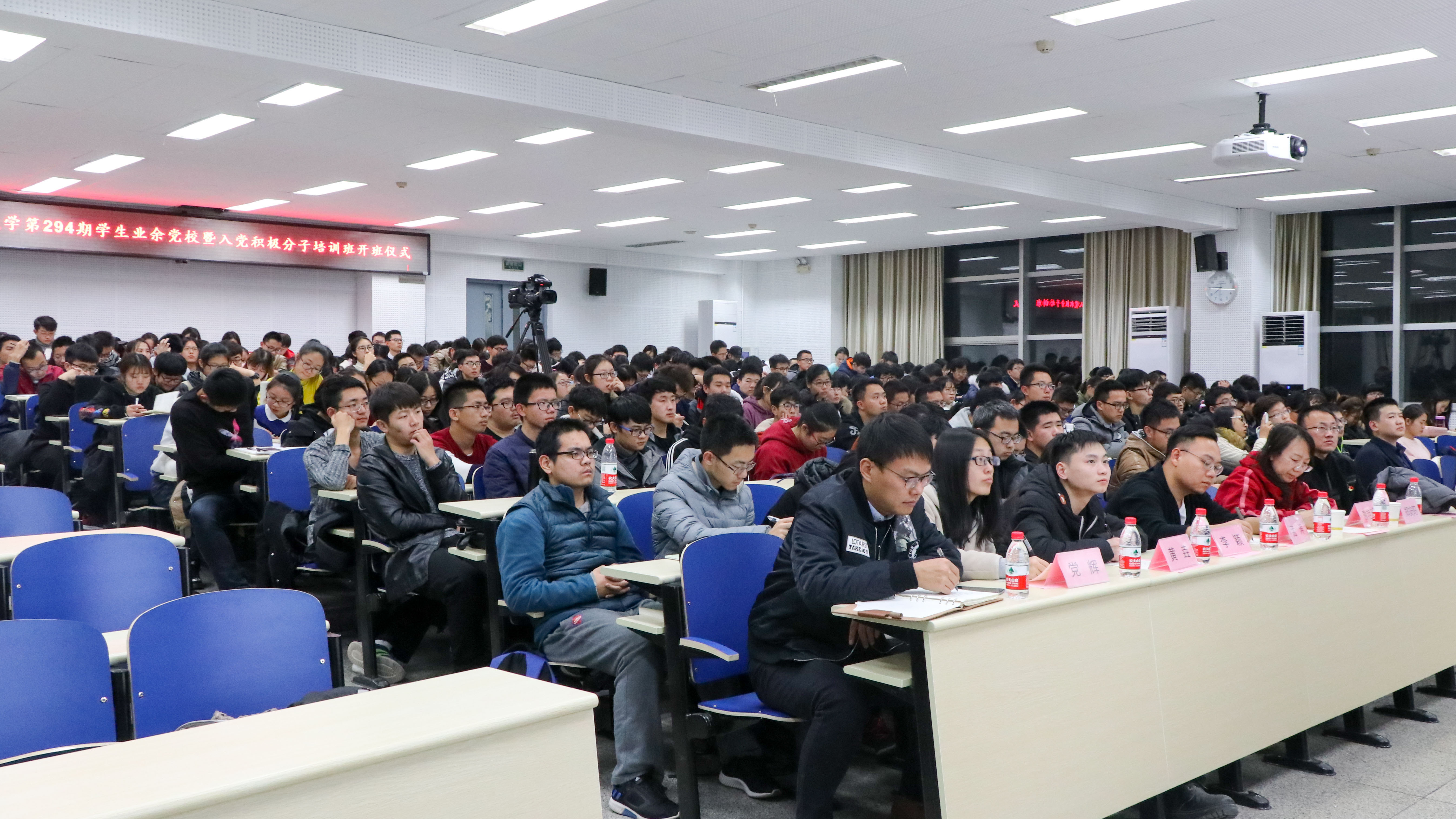 仪式结束后,黄武南为学员带来了以《学习十九大精神,以实际行动入党》为主题的理论报告。报告提纲挈领地从“新时代、新使命、新思想、新征程”四个方面,以生动的事例引入,为学员们诠释了党的十九大精神。黄老师在报告中指出,作为入党积极分子,首先要认真学习理论,坚定理想信念,提高思想认识,真正做到从思想上入党。同时,他指出,学生的天职是学习,科学文化知识是成才报国的物质基础,良好的学业成绩是学生党员先进性在本职岗位上的体现,并鼓励大家以优秀学长学姐为榜样,树立远大目标,刻苦钻研学习,为实现科技报国的梦想奠定坚实基础。