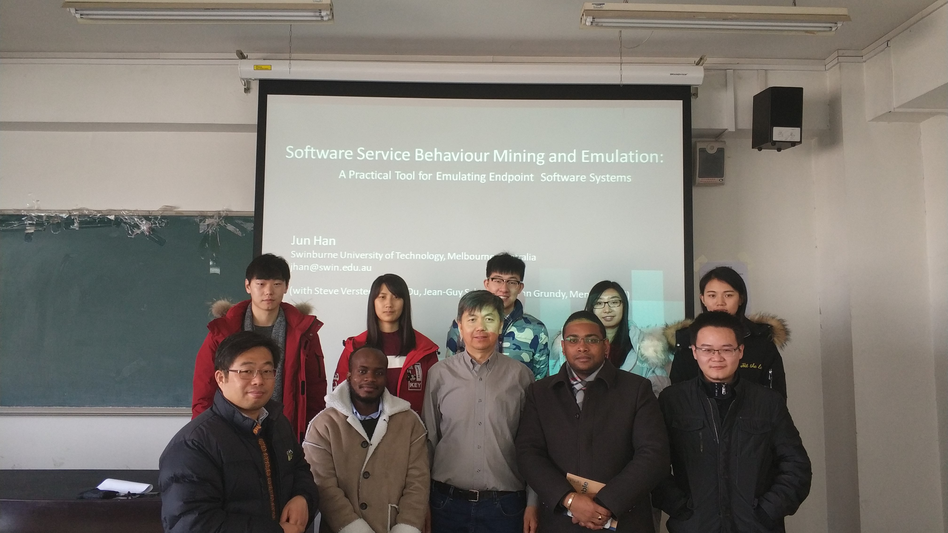 孙昌爱教授邀请,澳大利亚斯文本科技大学(Swinburne University of Technology)韩军教授到我校进行为期10天的学术交流与合作。11月29日上午,韩军教授在信息楼721作了题为“软件服务行为挖掘及模拟”的学术报告,60多名师生参加了此次报告会。