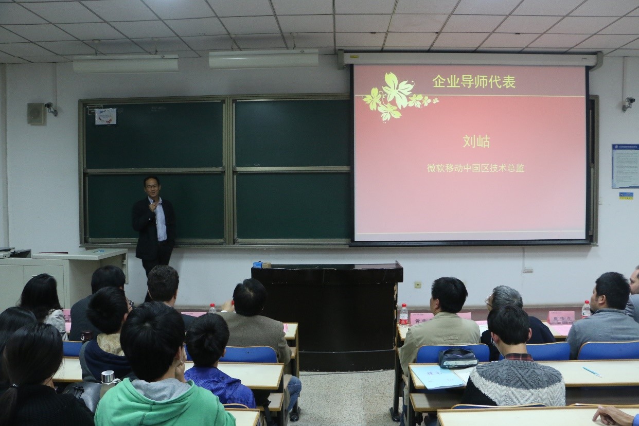 该平台聘请了一批技术精湛、经验丰富的企业管理人员为学生创新创业的企业导师。学生将从该平台中获得比赛指导、技术指导、就业指导以及创业指导,进而提高创新创业能力。微软移动中国区技术总监刘岵作为企业导师代表寄语同学,他告诫大家要抓好基础学习,尤其是基础学科的学习,这对于锻炼思维能力具有重要意义;同时还应尽早发现自己的兴趣所在,努力提升发现问题、解决问题和团队协作的能力。