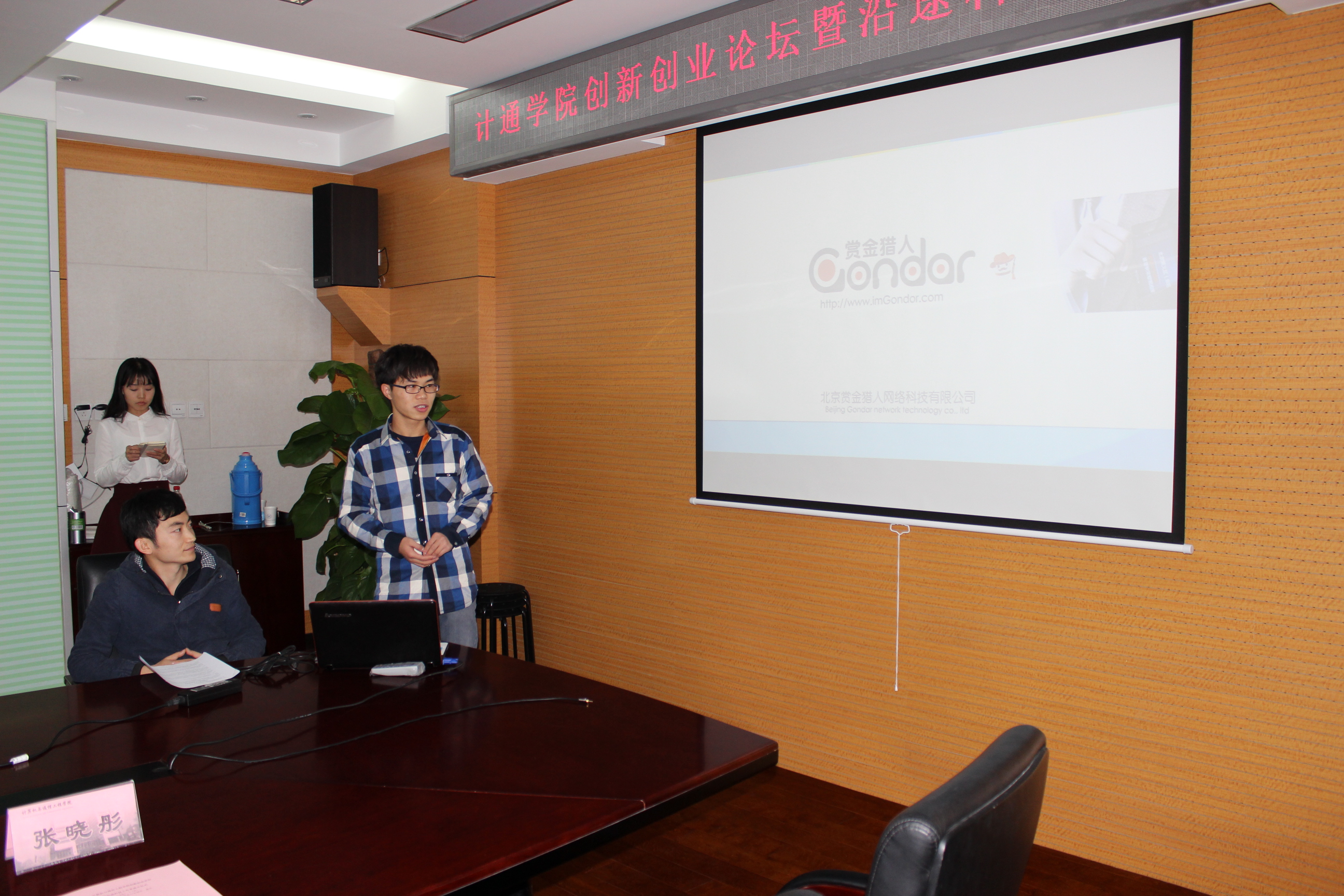 两支优秀学生创业团队的代表汪睦雄和巩金蕾分别就赏金猎人APP和七彩贝壳两个创业项目的创意来源、主要功能、发展状况、未来目标以及自己创业的心得体会与现场听众进行了分享和交流,希望通过自己的经历,激励鼓舞身边更多的同学加入到创新创业的事业中来。