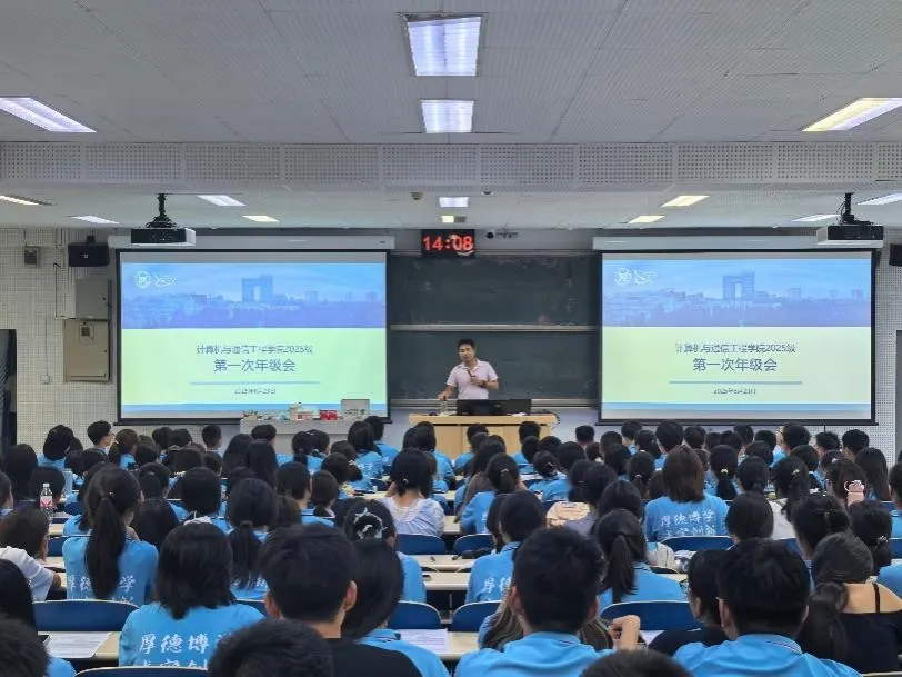 2025级本科新生第一次年级会在机电楼201教室如期举行。校保卫处治安科庄永刚老师受邀出席,新生辅导员、小班主任与全年级390名新生齐聚一堂,共赴这场初入大学的重要会面。