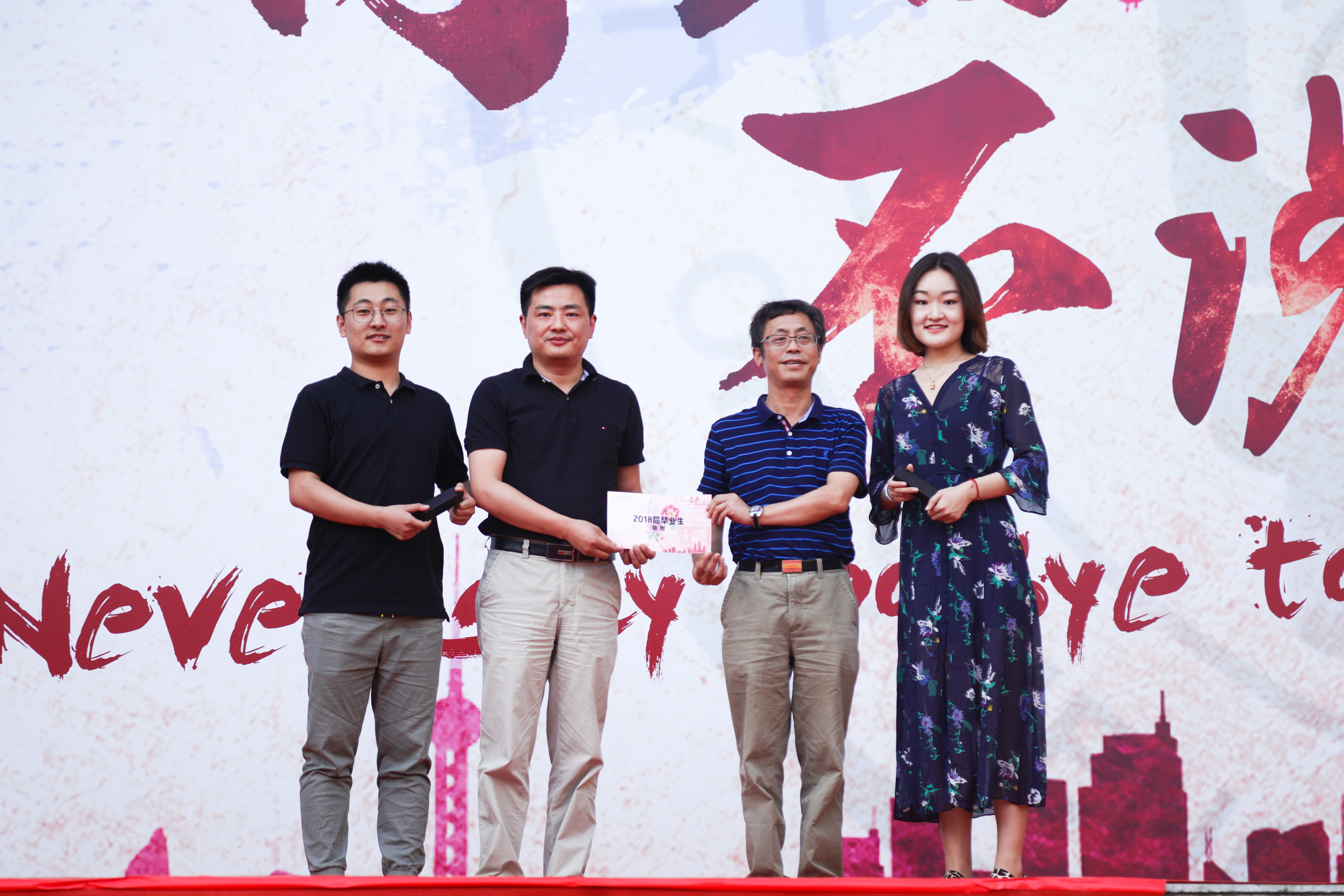 参与“图书漂流”活动的毕业生代表上台为学弟学妹赠送图书并接受捐赠证书。