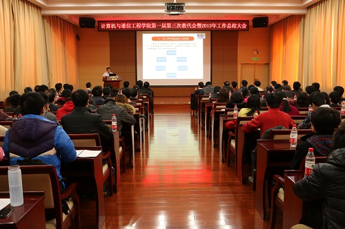 12月31日下午,成人漫画 第一届第三次教代会暨2013年工作总结大会在图书馆报告厅成功举行。副校长权良柱、校工会常务副主席贾水库和学院党政领导班子成员出席会议,学院教职员工和学生代表120余人参加会议。会议由副院长韩伯涛主持,学院班子成员进行了总结述职,权良柱副校长发表了讲话。