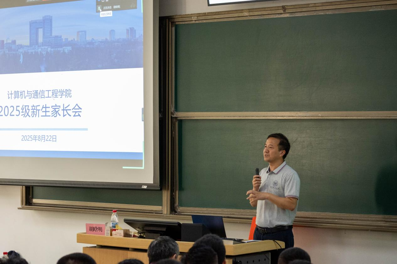 会议共三项议程。殷绪成首先系统介绍了学院育人体系。他指出,学院传承北科大红色基因,深入学习贯彻习近平总书记重要回信精神,以计算机科学与技术、通信工程两个国家一流专业为依托,凭借ESI全球排名前1‰、QS电子工程学科前300的学科实力,以及高庆狮院士、涂序彦教授等前辈学者的学术传承,持续为国家战略需求培养领军人才。面对人工智能时代的机遇与挑战,他鼓励学生积极拥抱技术变革、保持探索精神,学院将通过目标化培养和资源支持全面助力学生成长。殷院长特别强调,家校之间应建立“适度放手+情感支持”的协同机制,共同培养具有创新能力与社会责任感的新时代人才。