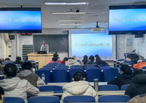 线下会场由学院网安系任课教师主讲(图为王洪泊教授在课程上作动员),学院创造性结合课程端、本科生导师制推行奖励计划,结合“案例教学+现场动员+的模式,紧密结合课程内容,有针对性地激发专业相关同学的参与热情。