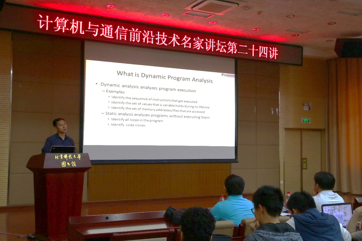 6月14日下午,计算机与通信前沿技术名家讲坛第二十四讲在我校图书馆四层报告厅成功举行。此次名家讲坛,成人漫画 邀请到了美国普渡大学张翔宇教授为广大师生带来题为“动态程序分析及其应用”的精彩学术讲座。 &nbs...